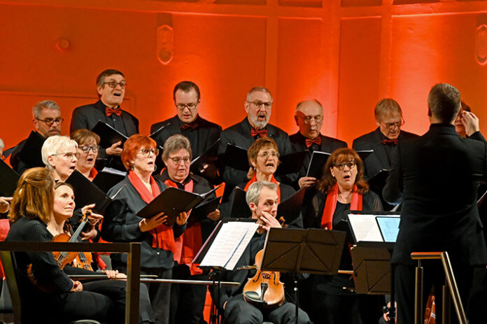 Musikalisch spannte das Programm einen weiten und abwechslungsreichen Bogen: Werke von Johann Sebastian Bach standen ebenso auf dem Programm wie Kompositionen von Will Todd, Oliver Gies und Rutter. Unter der Gesamtleitung von Chorleiter Martin Krause entfaltete sich ein facettenreicher Konzertabend, der sowohl feierliche als auch beschwingte Momente bereithielt und mit großer Ruhe, Präzision und spürbarer Leidenschaft den Chor durch das umfangreiche Programm führte. Besonders bereichert wurde das Konzert durch ein hervorragend musizierendes Streichquartett aus dem Varietas Ensemble, Leitung Axel Steurich , dessen feinfühliges Spiel dem Abend eine zusätzliche Tiefe, Besinnlichkeit und festlichen Glanz verlieh. Ebenso trug der einfühlsame Pianist Christoph Wesskamp am Flügel maßgeblich zur dichten, festlichen Atmosphäre bei und begleitete Chor und Ensemble mit großer musikalischer Sensibilität. Zwischen den musikalischen Beiträgen setzte Ulrike Wojciech einen besonderen Akzent, indem sie ein Gedicht von Heinrich Seidel aus dem Jahr 1890 vortrug – „Der kleine Nimmersatt“, auch bekannt als der lange Wunschzettel an den Weihnachtsmann. Mit einem Augenzwinkern und viel Gefühl vorgetragen, sorgte es für Schmunzeln und stille Nachdenklichkeit zugleich. Bewusst hatte sich der Chor in diesem Jahr gegen ein aufwendig gestaltetes Hochglanzprogramm entschieden. Stattdessen erhielten die Besucher ein schlichtes, charmantes -Pur- Programm. Das eingesparte Geld soll dem Kinderheim der Fürstin-Franziska-Christine-Stiftung zugutekommen – eine Entscheidung, die viele Gäste berührte und die für den Chor ganz im Sinne eines „echten Weihnachtsgedankens“ steht.