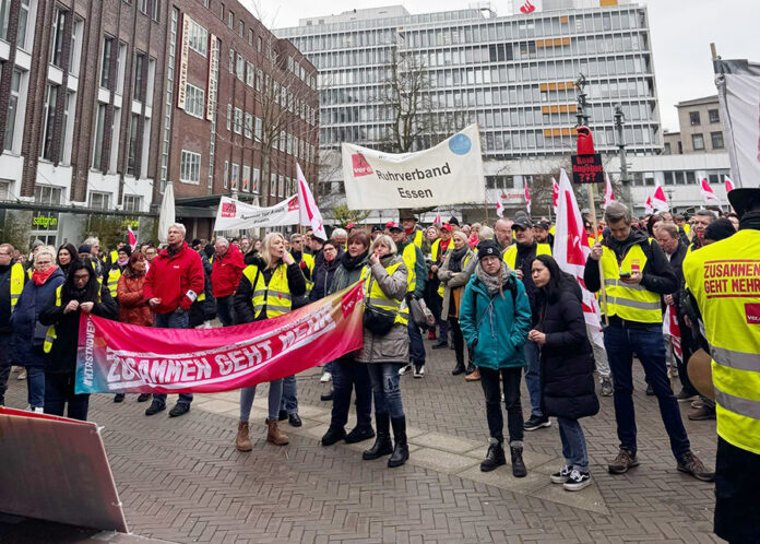 Die Gewerkschaft ver.di hat seit Montag Beschäftigte der Stadtverwaltung Essen zu Warnstreiks aufgerufen. Die Betriebsabläufe in unterschiedlichen Bereichen der Stadtverwaltung können damit im Laufe der Woche beeinträchtigt sein. Am heutigen Mittwoch kann es zu erheblichen Einschränkungen, unter anderem im Rathaus, in den städtischen Kitas und im Offenen Ganztag (OGS) kommen. Dazu wird das Angebot im ÖPNV der Ruhrbahn ganztägig ausfallen (Busse und Bahnen).