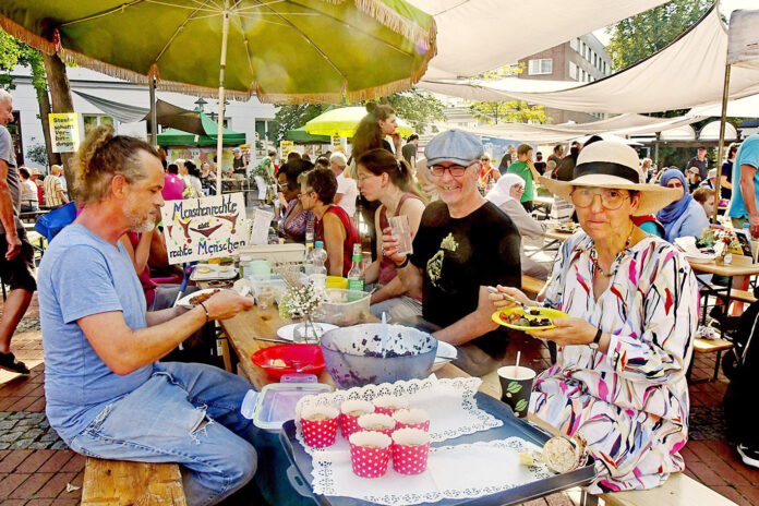 Die Menschen sind eingeladen, an einer großen Tafel mit mitgebrachten Speisen Platz zu nehmen und diese gemeinsam zu verzehren. Die mitgebrachten Köstlichkeiten verlocken zum Probieren aber auch zum Austausch über Herkunft, Tradition, Rezepte, Herstellung und damit verbundene Geschichten. An den Ständen der Veranstalter können die Besucher sich über deren Ziele und Aktivitäten informieren. Getränkestände, Kreativ- und Aktivangebote für Kinder mit dem Spielmobil der Arbeiterwohlfahrt und ein Bühnenprogramm runden die Veranstaltung ab. Highlight ist ein Wettbewerb in Form eines poetry slams zum Thema: „Was hat Essen mir Demokratie zu tun?“. Für musikalische Begleitung sorgen die Schülerbands des Gymnasiums an der Wolfskuhle, der Kinderchor der evangelischen Kirchengemeinde Königssteele, der Chor „Stimmen gegen Rechts“, die Formation „Katoa“ Latin Pop und Jazz und die Leierkastenspielerin Bianca. Barkau. Anmeldungen sind erwünscht unter: info@steenala.deFoto: Janz